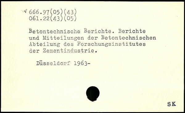 Betontechnische Berichte. Berichte und Mitteilungen der Betontechnischen Abteilung des Forschungsinstitutes der Zementindustrie. Düsseldorf 1963-