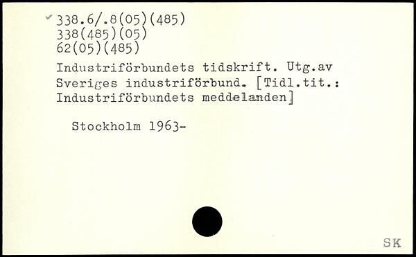 Industriförbundets tidskrift. Utg.av Sveriges industriförbund.