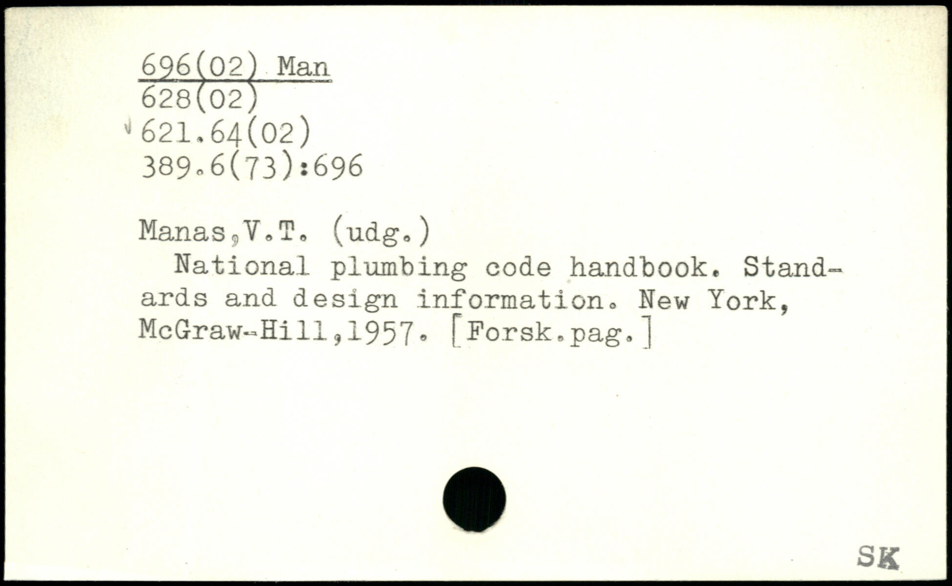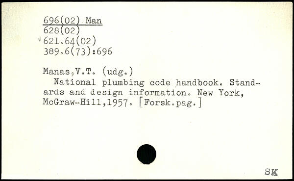 ManaSgY.T. (udg,) National plumbing code handbook. Standards and design information.