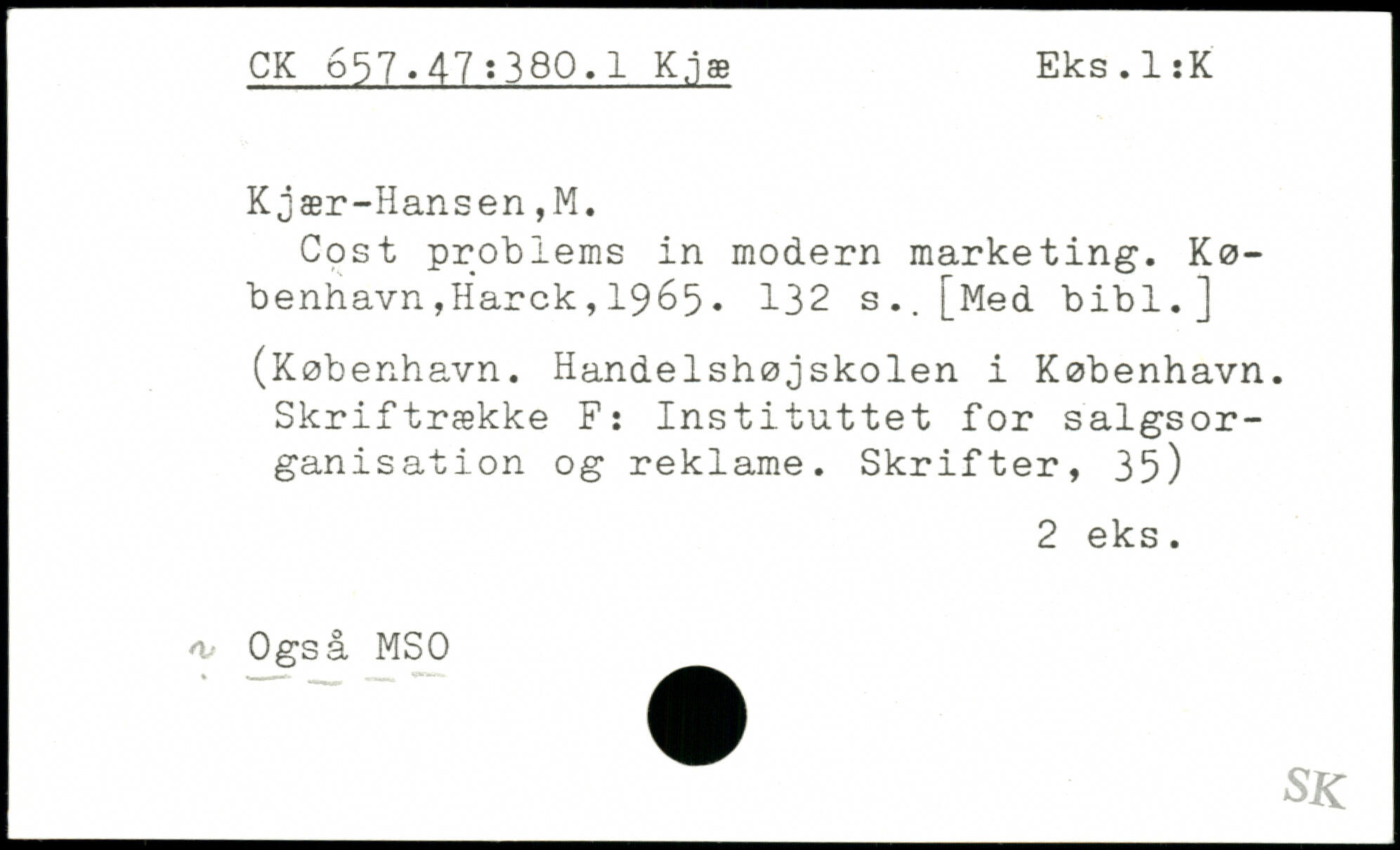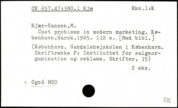 Cost problems in modern marketing.