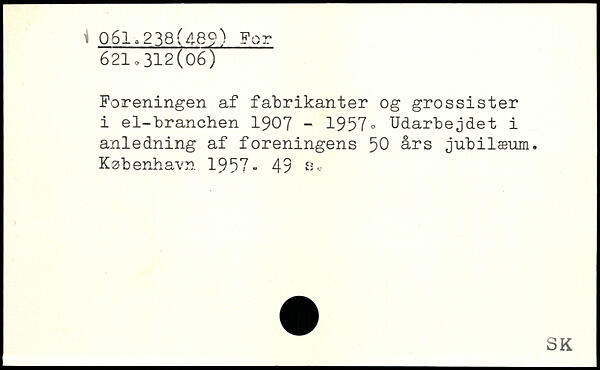 Foreningen af fabrikanter og grossister i el-branchen 1907 - 1957. Udarbejdet i anledning af foreningens 50 års jubilæum.