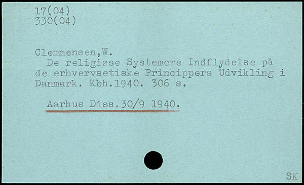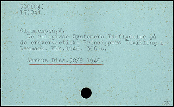 C1emmensen,W. De religiøse Systemers Indflydelse på de erhvervsetiske Princippers udvikling i Danmark. Kbh.1940.
