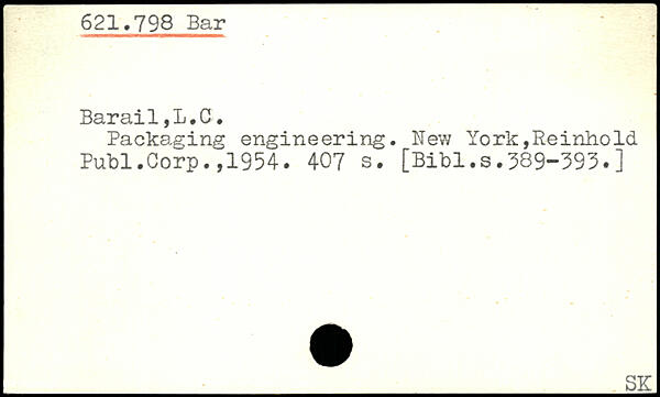 Packaging engineering. New York,Reinhold Publ.Corp.71954.