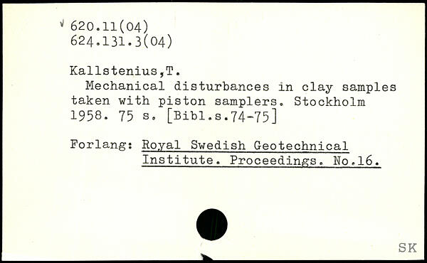 Mechanical disturbances in clay samples taken with piston samplers.