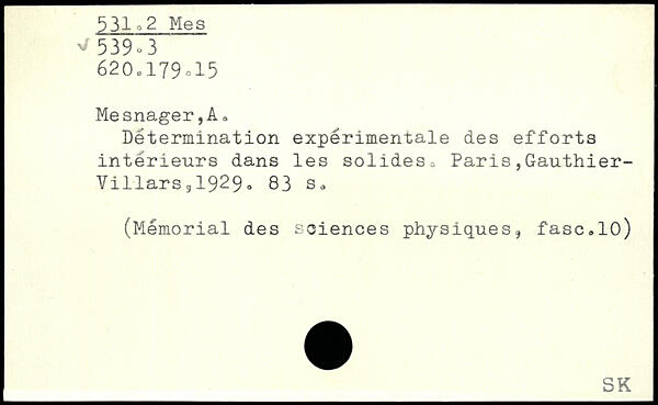 Détermination expérimentale des efforts intérieurs dans les solidesa Paris,Gauthier-Villars j1929