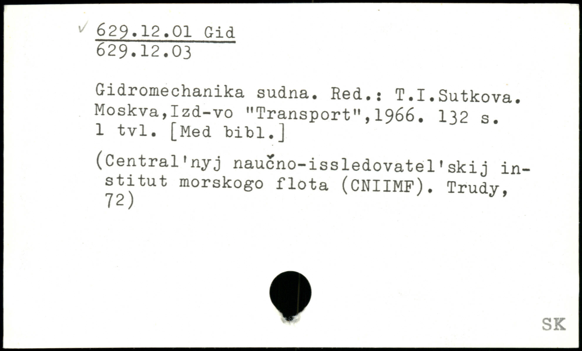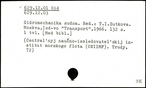Gidromechanika sudna. Red.: T.I.Sutkova. Moskva,Izd-vo "Transport", 1966. 1 tvl. [Med bibl.J (Central'nyj naucno-issledovatelfskij in-stitut morskogo flota (CNIIMP). Trudy