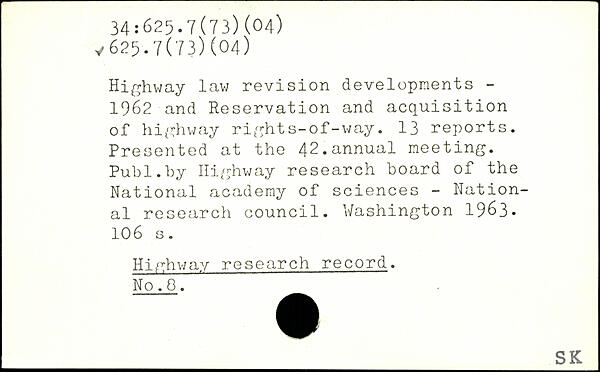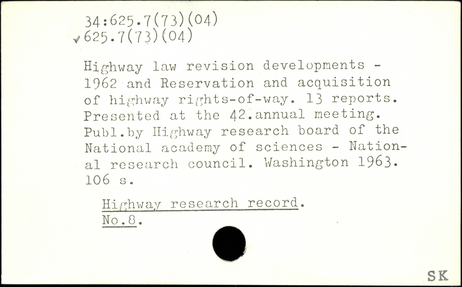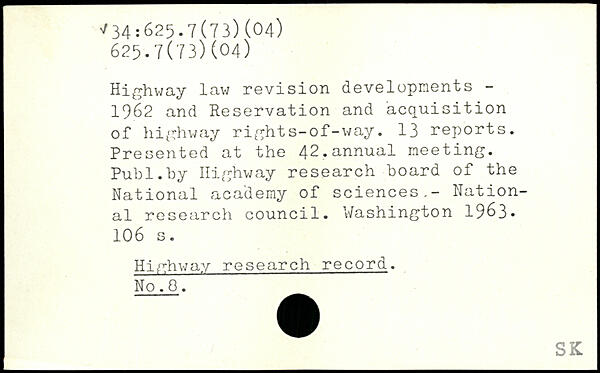 Highway law revision developments -1962 and Reservation and acquisition of highway rights-of-way. 13 reports. Presented at the 42.annual meeting.