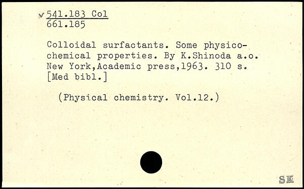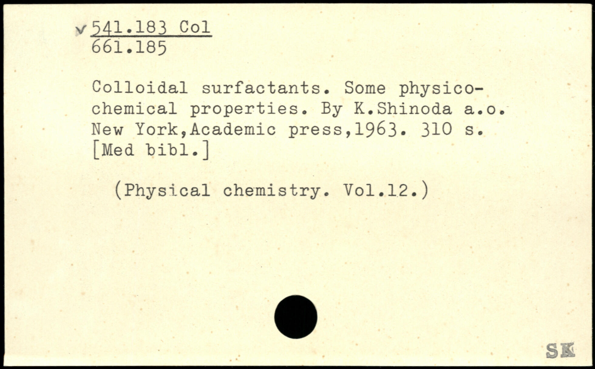 Colloidal surfactants. Some physicochemical properties. By K.Shinoda a.o.