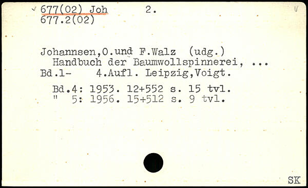 Johannsen,0.und F.Walz (udg.) Handtuch der Baumwollspinnerei, ... Bd.l-