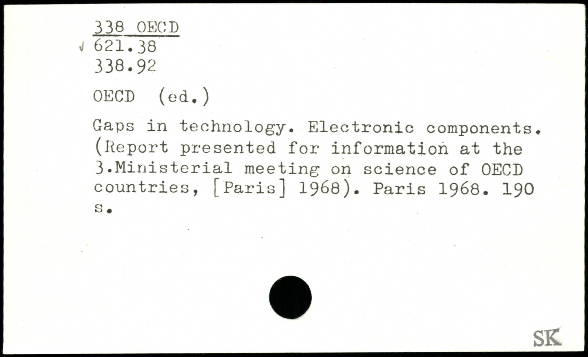 Gaps in technology. Electronic components. (Report presented for information at the 3.Ministerial meeting on science of OECD countries