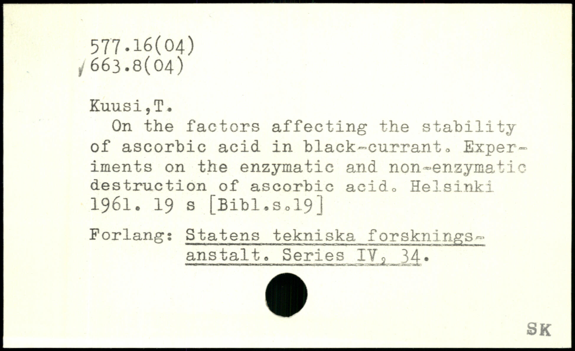 On the factors affecting the stability of ascorbic acid in black-currant, Experiments on the enzymatic and non-enzymatic destruction of ascorbic acid