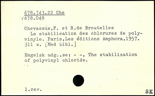 Chevassus,F. et R.de Broutelles La stabilisation des chlorures de poly-vinyle.