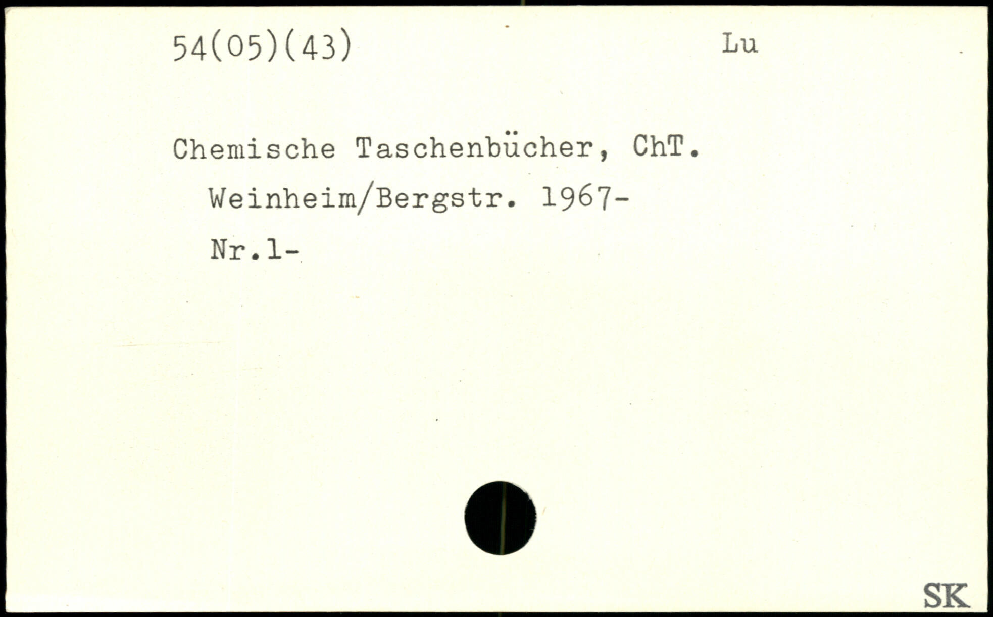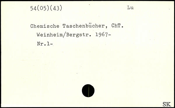 Chemische Taschenbücher, ChT. Weinheim/Bergstr. 1967-Nr.l-