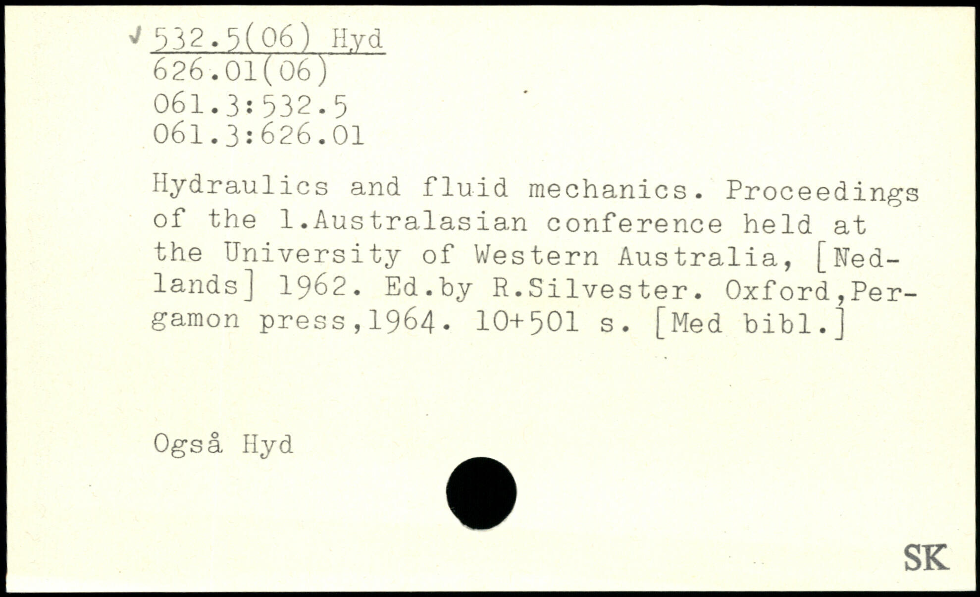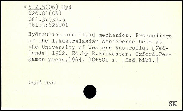 Hydraulics and fluid mechanics. Proceedings of the 1.Australasian conference held at the University of Western Australia, [Ued-lands] 1962. Ed.by R.Silvester.
