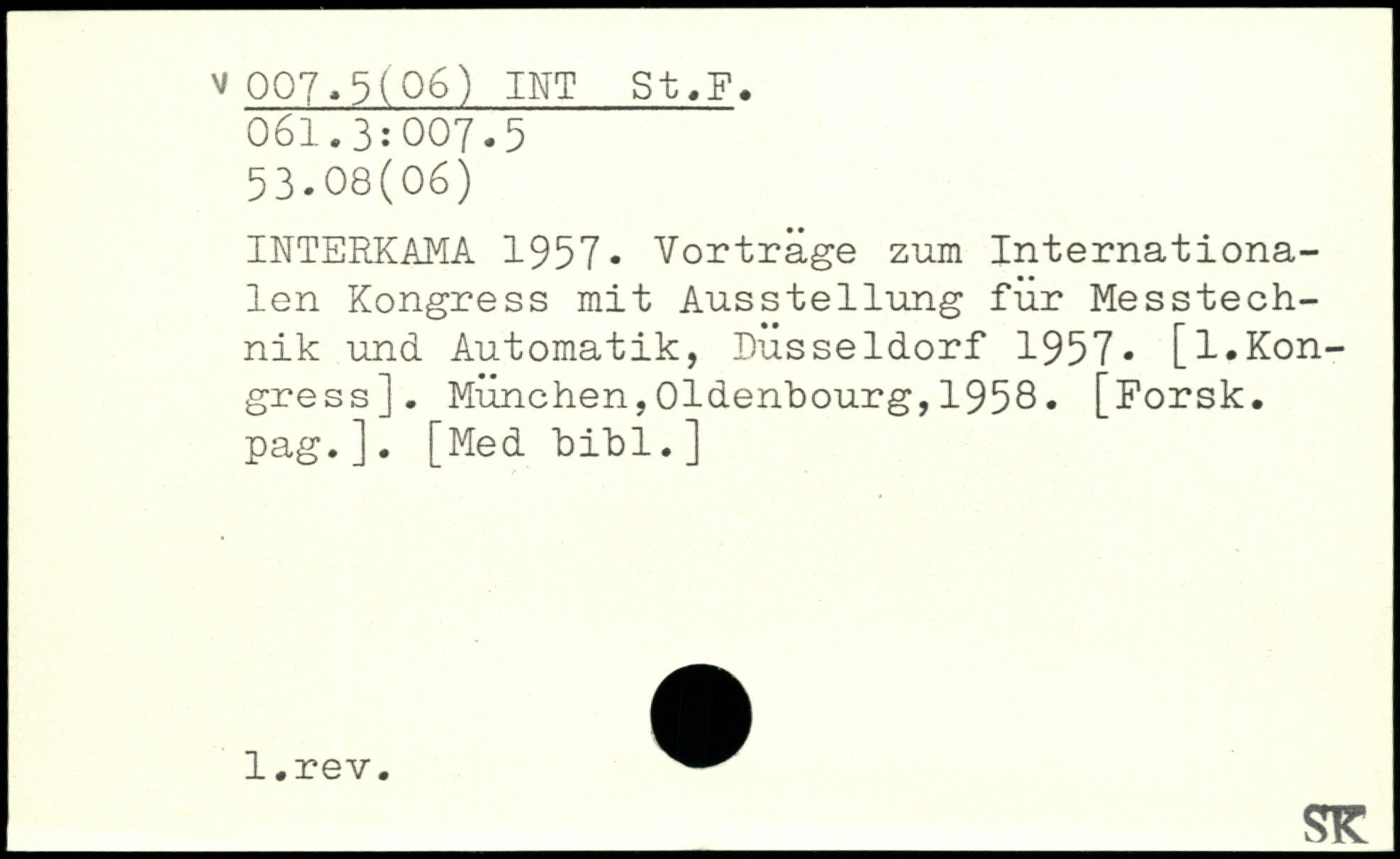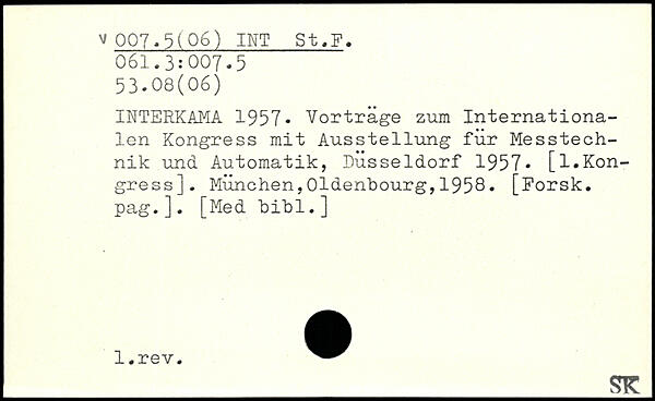 INTERKAMA 1957, Vorträge zum Internationalen Kongress mit Ausstellung für Messtechnik und Automatik, Düsseldorf 1957- [l.Kongress]
