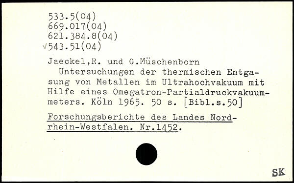 Untersuchungen der thermischen Entgasung von Metallen im Ultrahochvakuum mit Hilfe eines Omegatron-Partialdruckvakuum-meters.