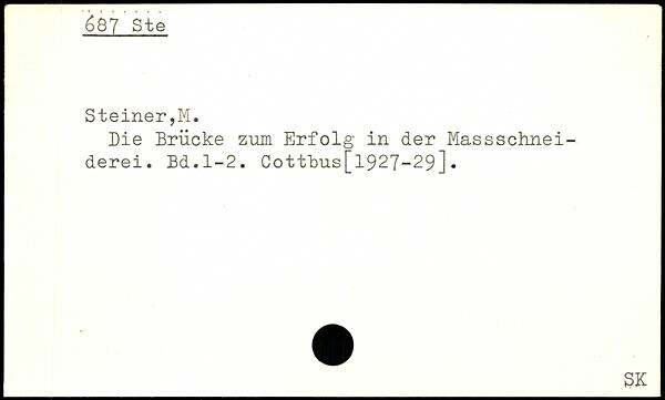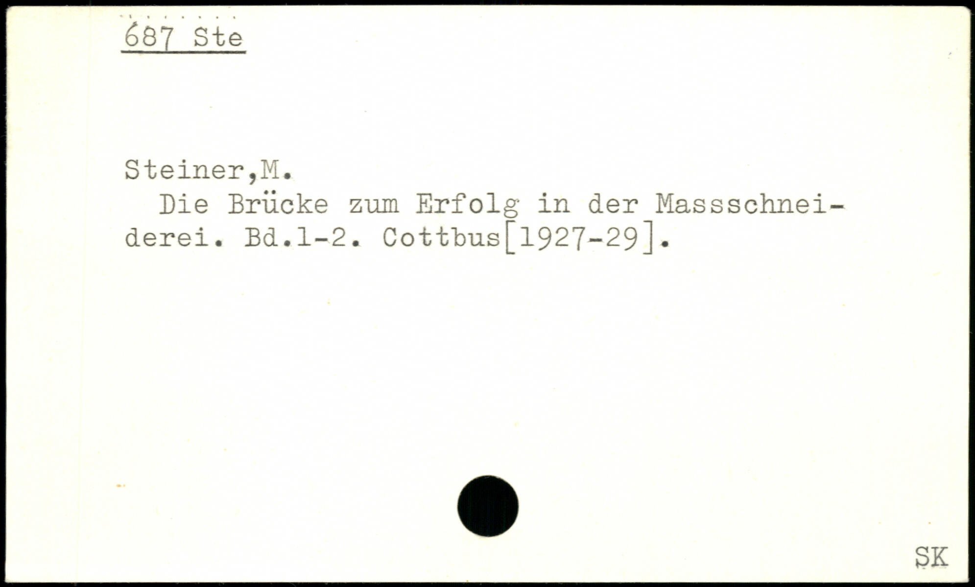 £87 Sie Steiner,M. Die Brücke zum Erfolg in der Massschnei-derei. Bd.1-2. CottTDUs[1927-29].