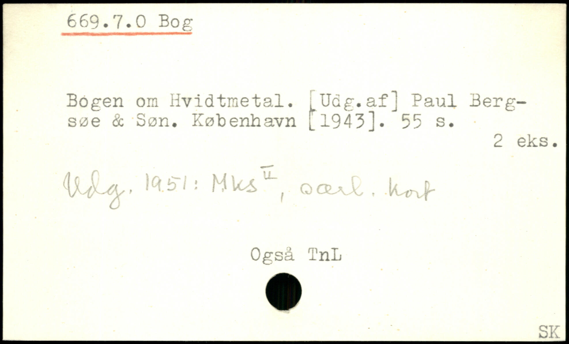Bogen om Hvidtmetal. [Udg.af] Paul Berg-søe & Søn. København L1943].