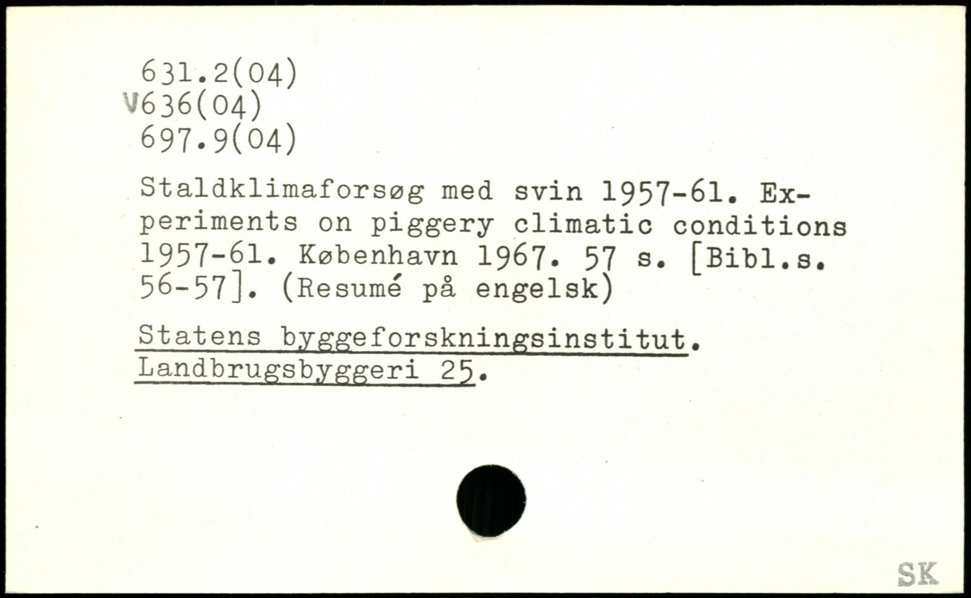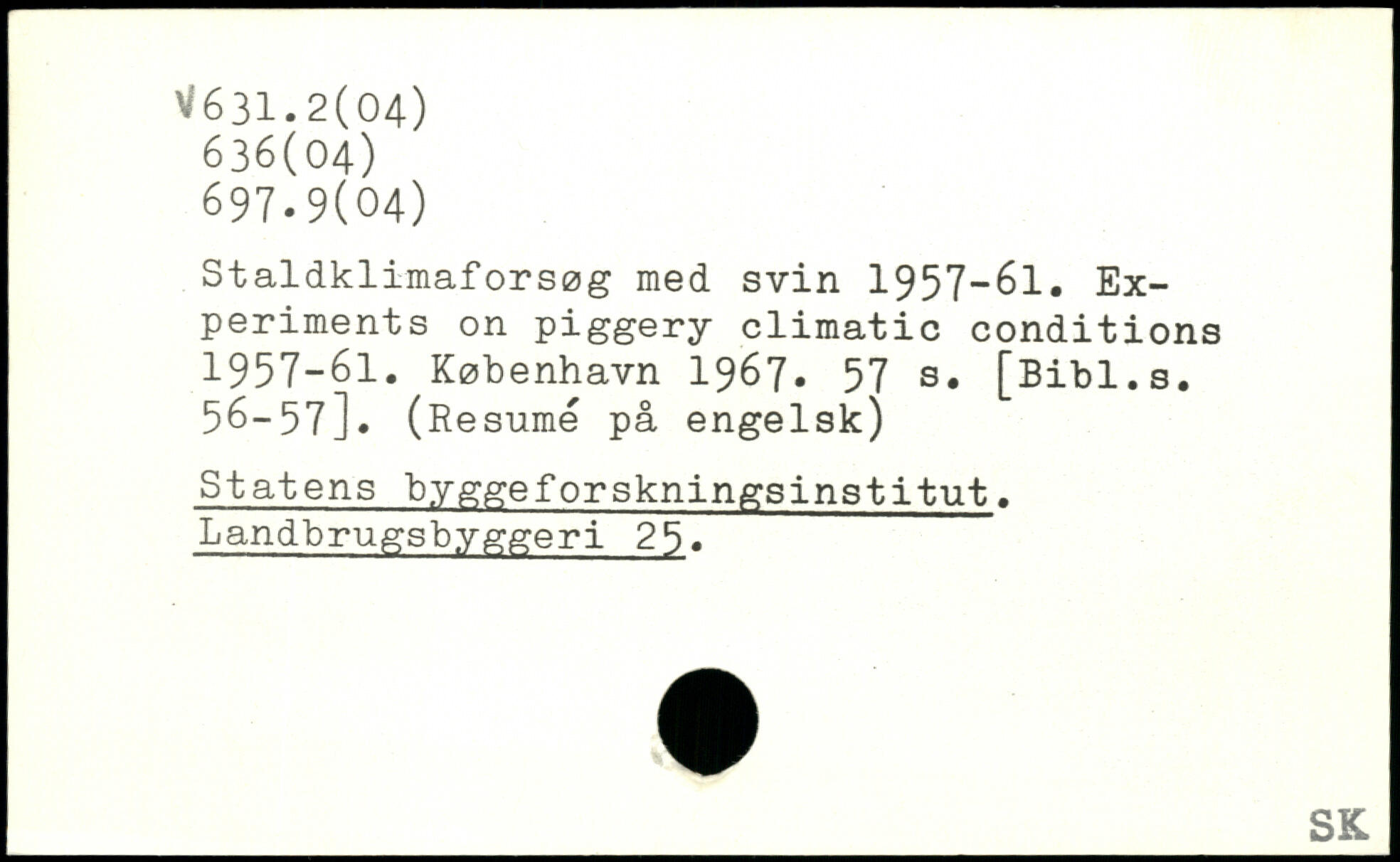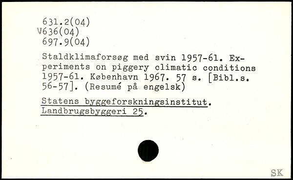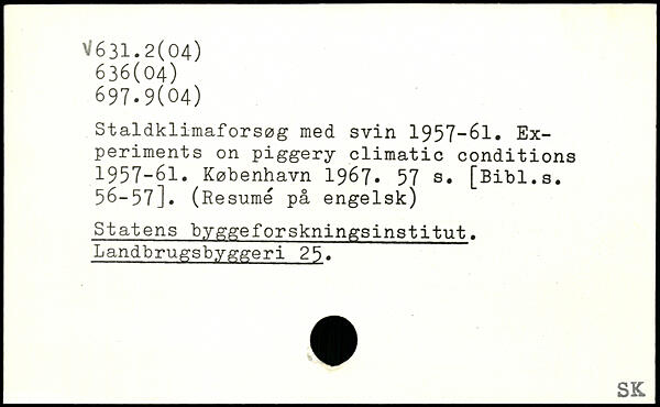 Staldklimaforsøg med svin 1957-61. Ex-periments on piggery climatic conditions 1957-61.