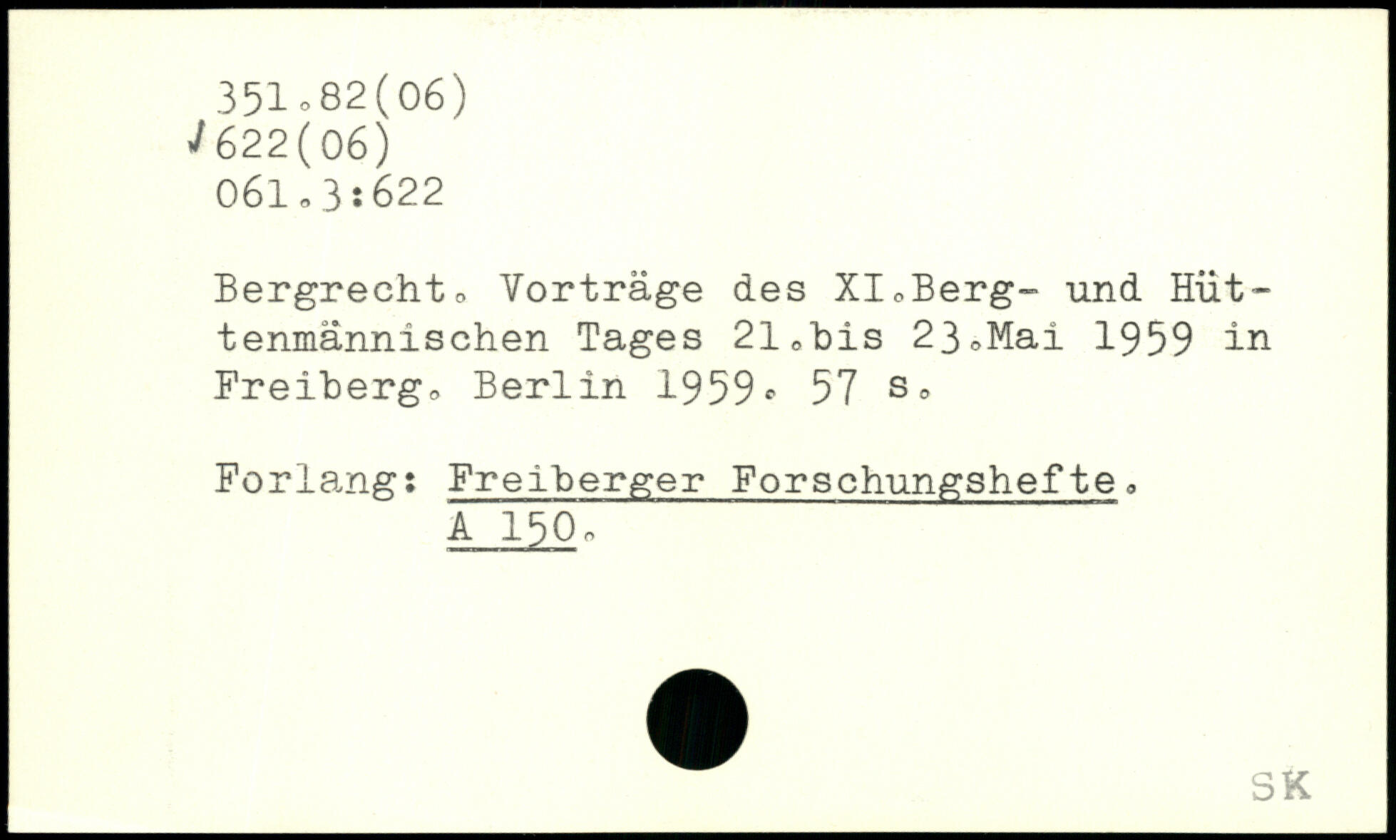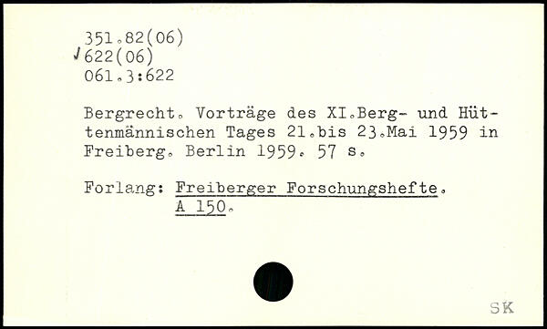 Bergrecht, Vorträge des XI,Berg- und Hüttenmännischen Tages 21obis 23,Mai 1959 in Freiberg