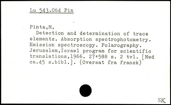 Detection and determination of trace elements. Absorption spectrophotometry. Emission spectroscopy. Polarography. Jerusalem,Israel program for scientific translations,1966.