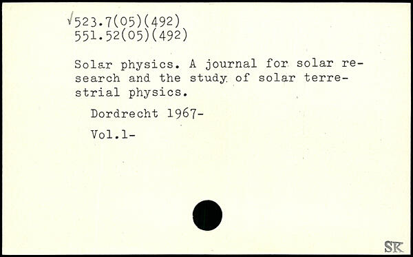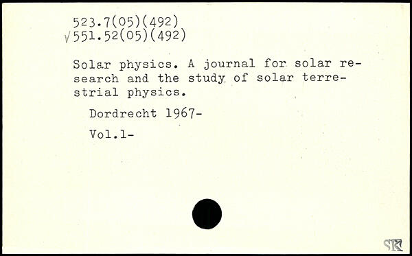 Solar physics. A journal for solar research and the study, of solar terrestrial physics. Dordrecht 1967- Vol.l-