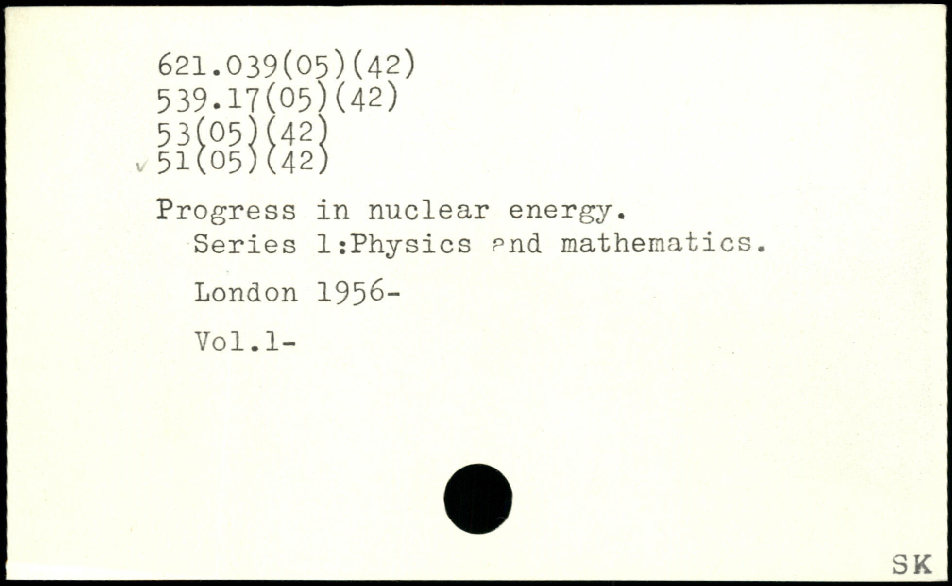 Progress in nuclear energy. Series l:Physics end mathematics.