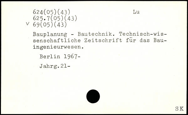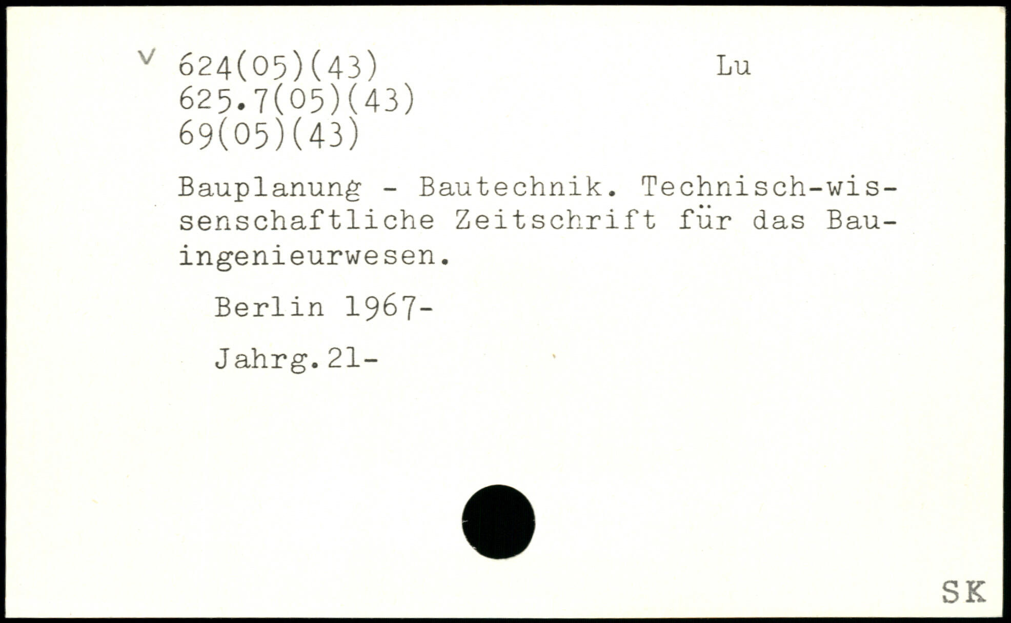 Bauplanung - Bautechnik. Technisch-wissenschaftliche Zeitschrift für das Bauingenieurwesen.