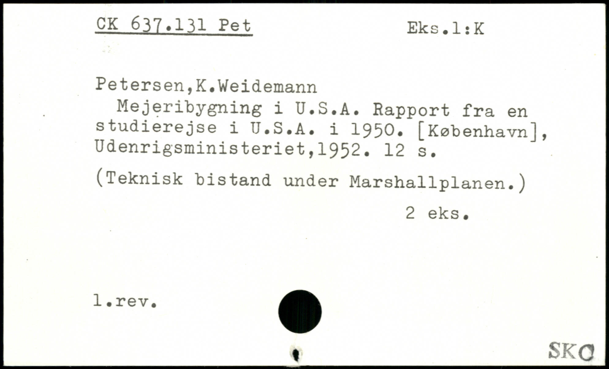 Petersen,K.Weidemann Mejeribygning i U.S.A. Rapport fra en studierejse i U.S.A. i 1950.
