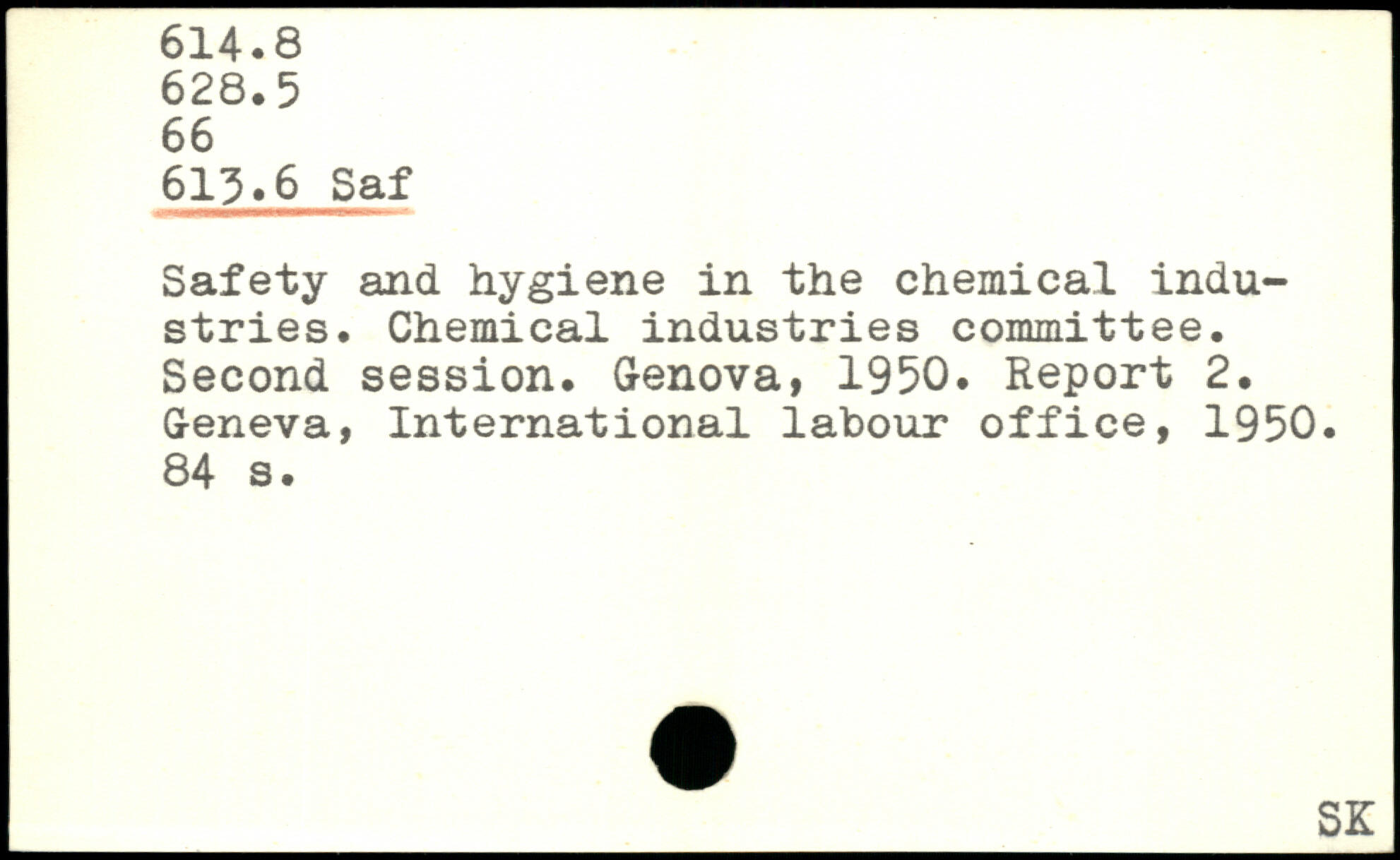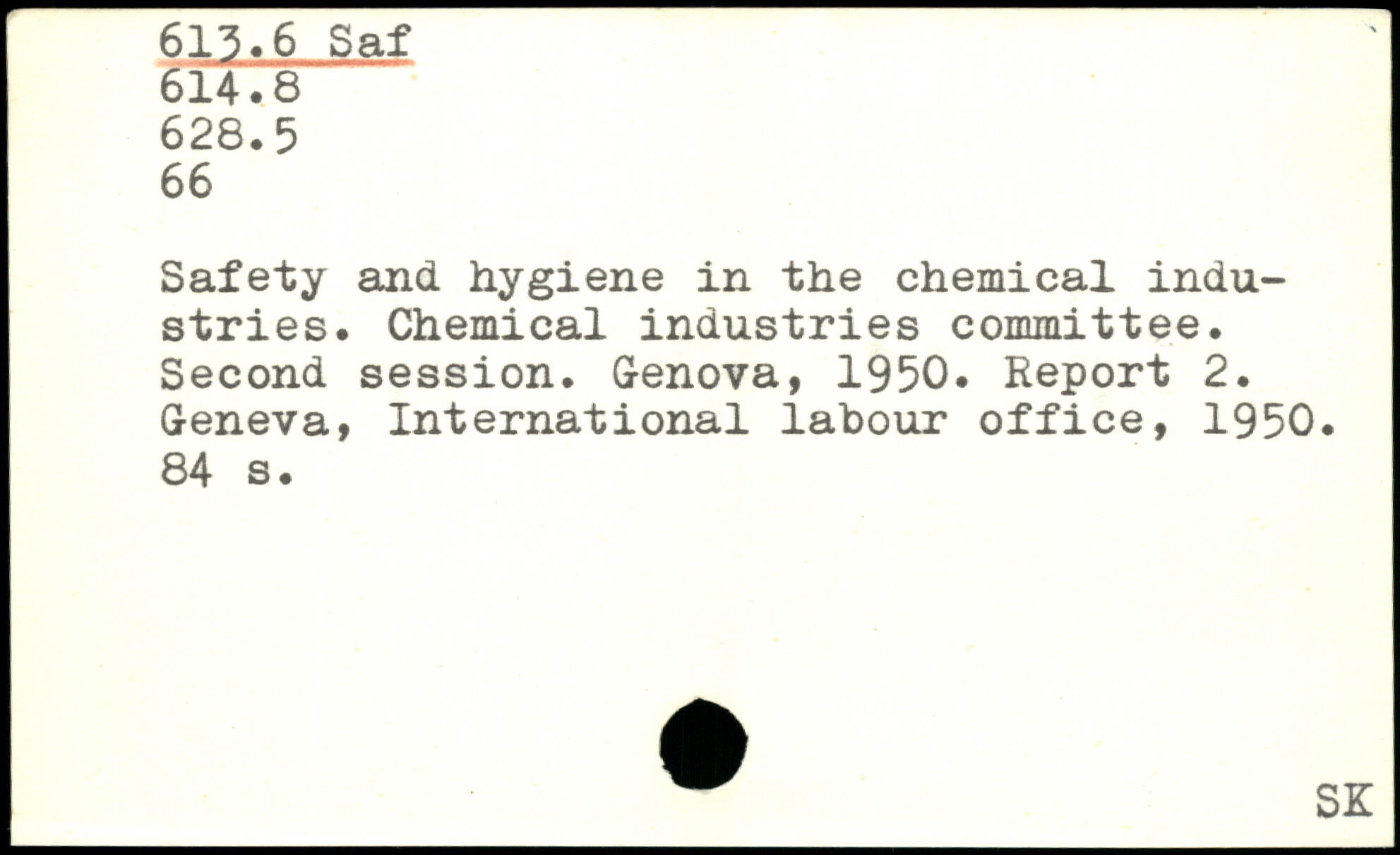 Safety and hygiene in the chemical industries. Chemical industries committee. Second session. Genova, 1950. Report 2.