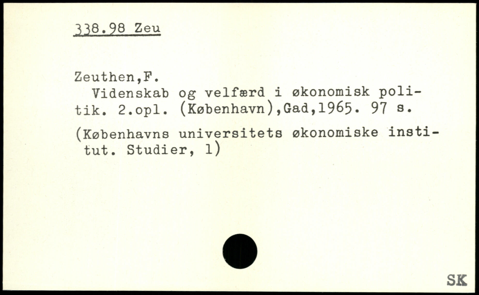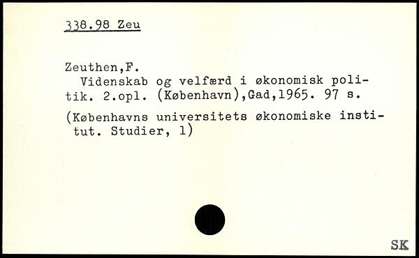 Videnskab og velfærd i økonomisk politik. 2.opl. (København),Gad,1965.