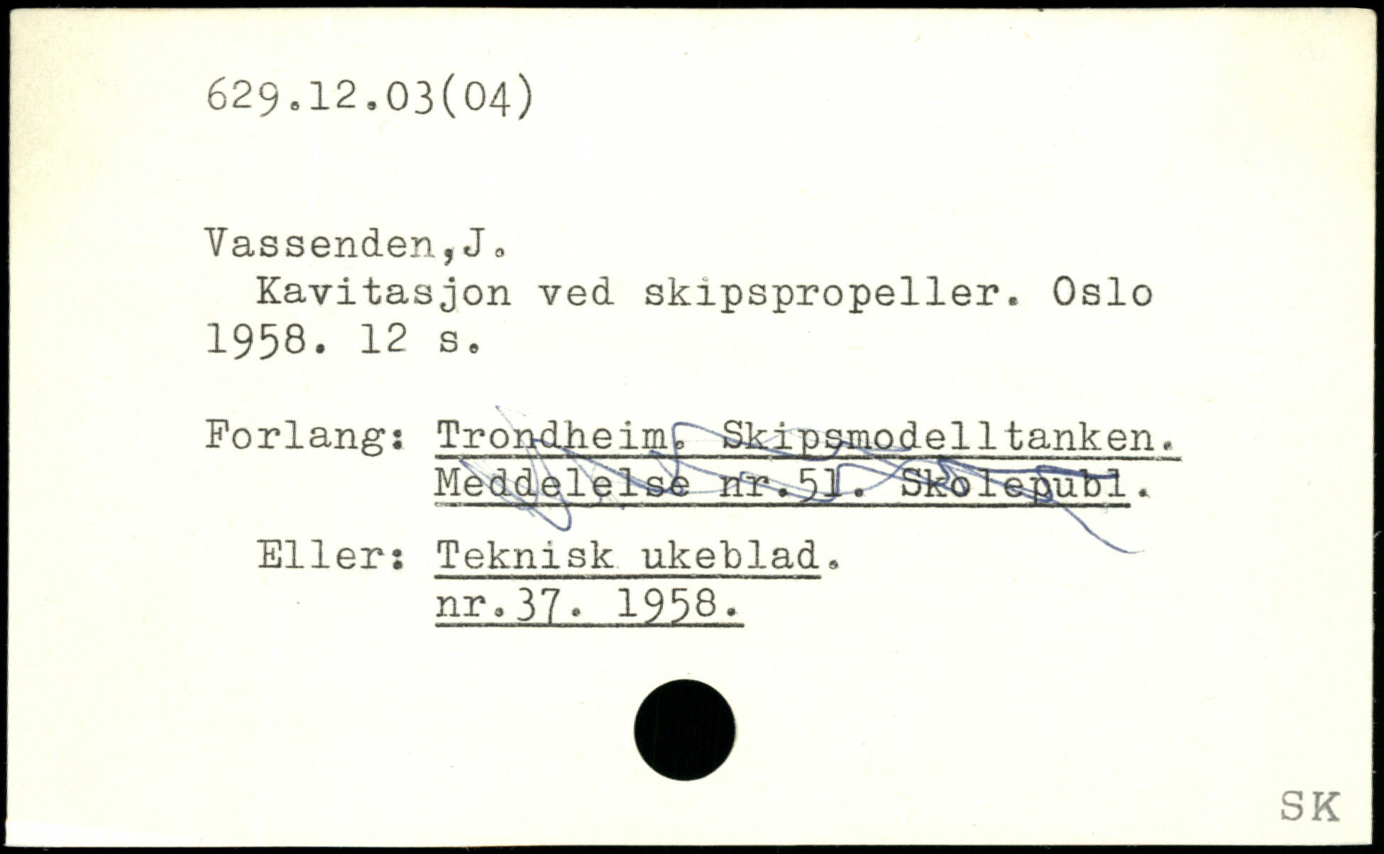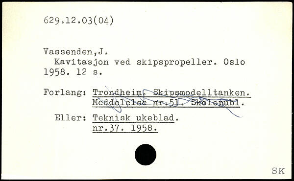 Kavitasjon ved skipspropeller. Oslo 1958.