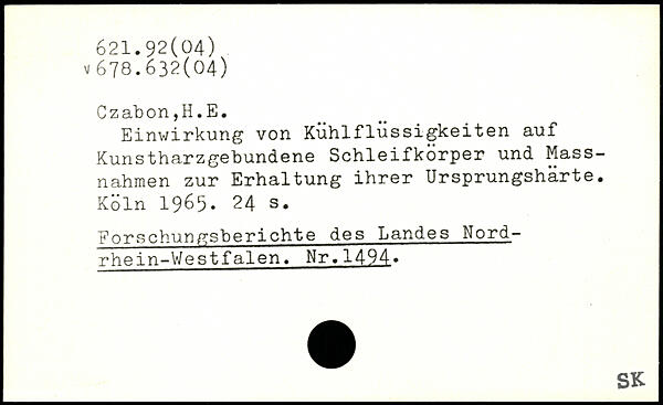 Einwirkung von Kühlflussigkeiten auf Kunstharzgebundene Schleifkörper und Massnahmen zur Erhaltung ihrer Ursprungshärte.