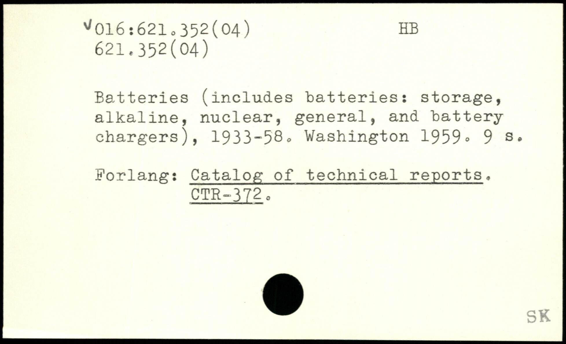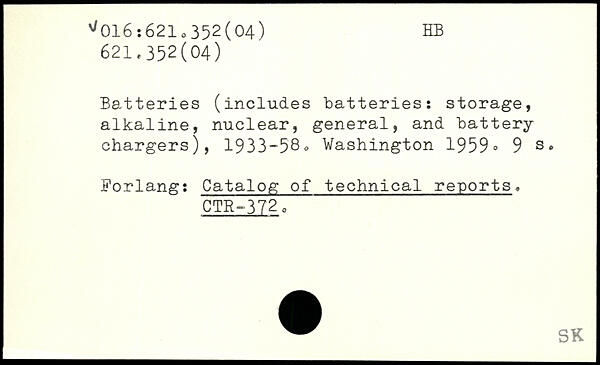 Batteries (includes batteries: storage, alkaline, nuclear, general, and battery-chargers), 1933-58