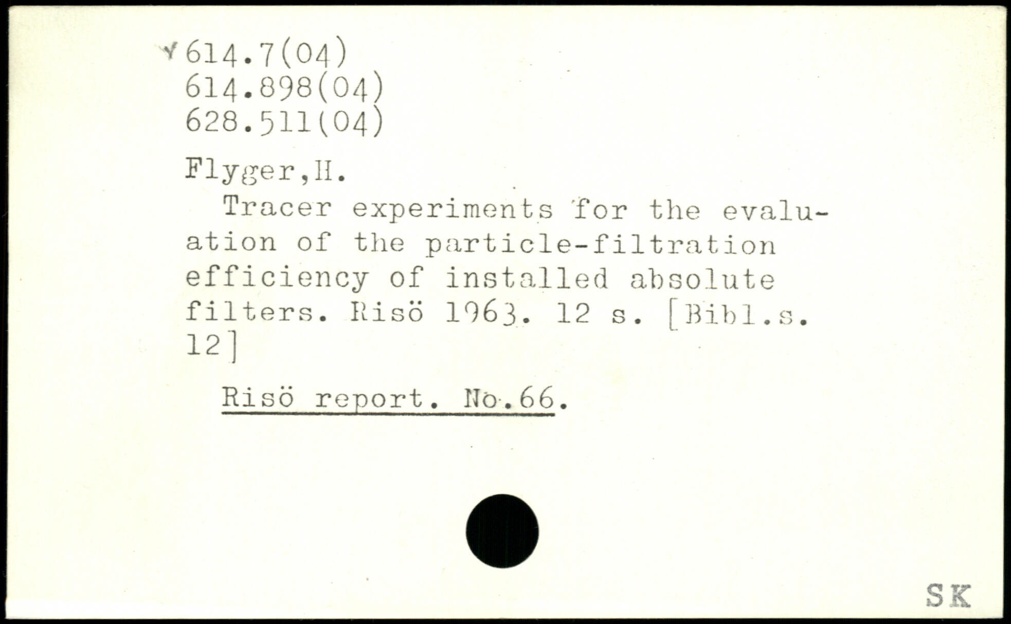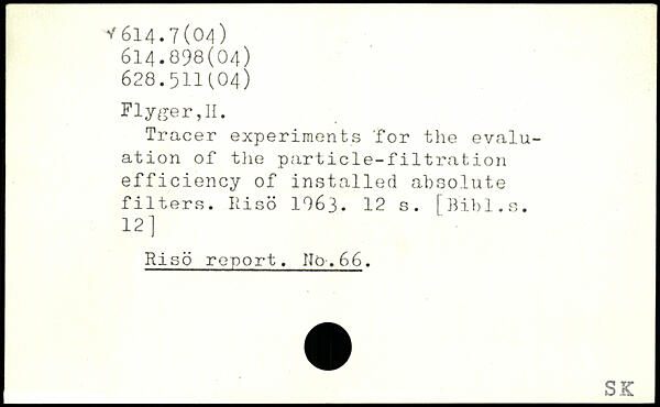 Tracer experiments for the evaluation of the particle-filtration I efficiency of installed absolute filters. Riso 1963.