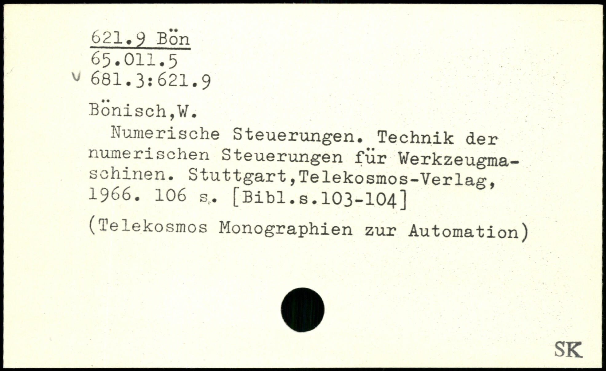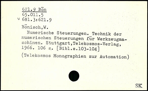 Numerische Steuerungen. Technik der numerischen Steuerungen für Werkzeugmaschinen. Stuttgart fTelekosmos-Verlag, 1966.