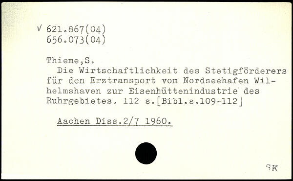 Die Wirtschaftlichkeit des Stetigförderers für den Erztransport vom Nordseehafen Wilhelmshaven zur Eisenhüttenindustrie des Ruhrgehietes o