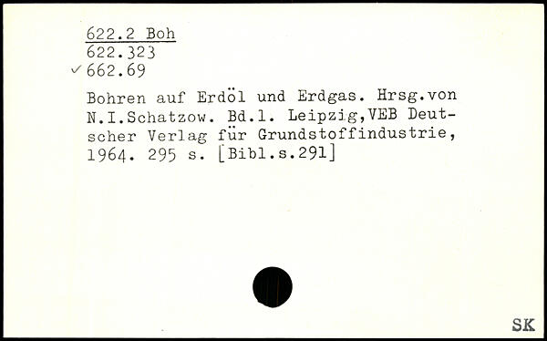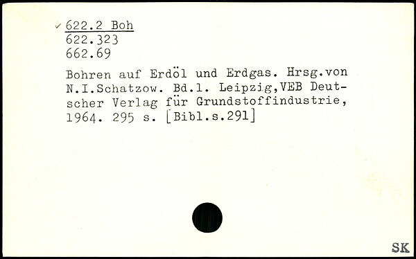 Bohren auf Erdöl und Erdgas. Hrsg.von N.I.Schatzow. Bd.l. Leipzig,VEB Deutscher Verlag für Grundstoffindustrie, 1964.