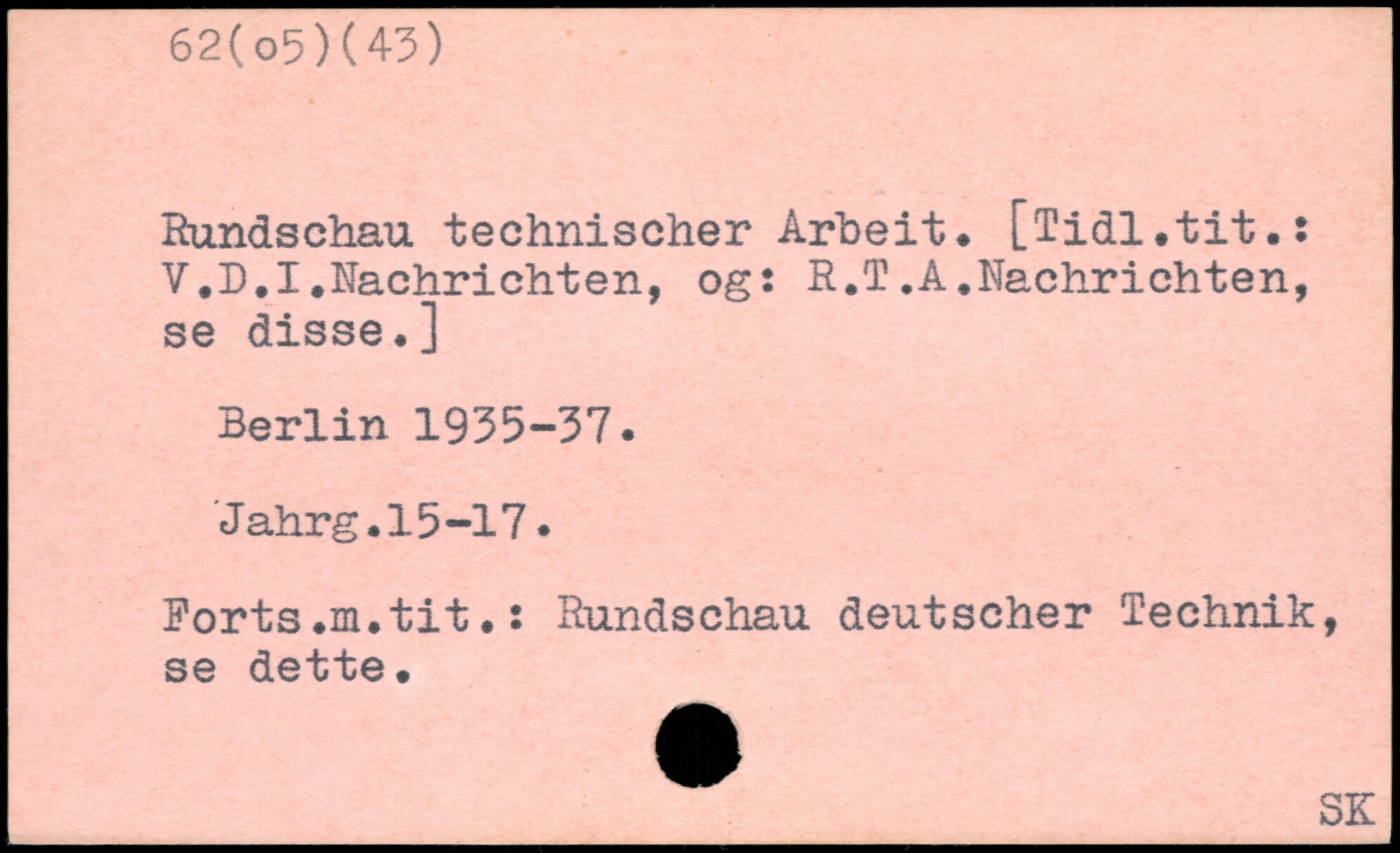 Hundschau technischer Arbeit. [Tidl.tit.: V.D.I.Nachrichten, og: R.T.A.Nachrichten, se disse.]