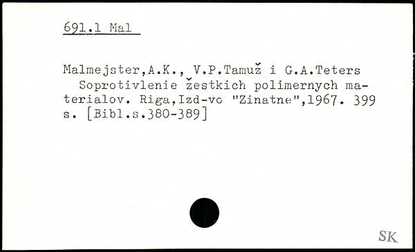 Malraejster,A.K., V.P.Tamuz i G.A.Teters Soprotivlenie zestkich polimernych raa-terialov. Riga,Izd-vc "Zinatne",1967.