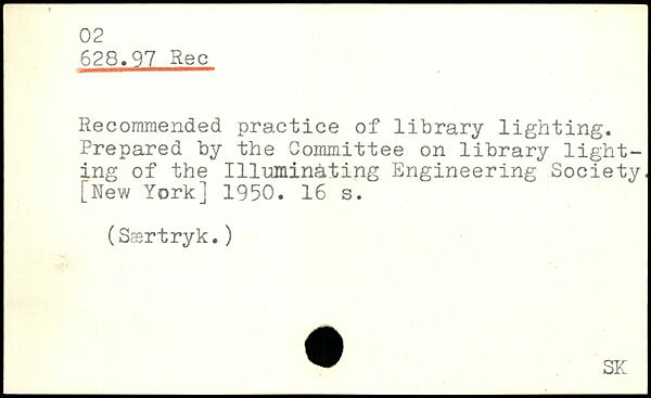 Recommended practice of library lighting. Prepared by the Committee on library lighting of the Illuminating Engineering Society