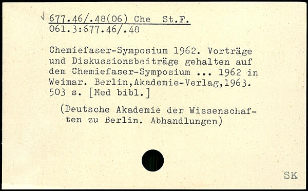 Chemiefaser-Symposium 1962. Vorträge und Diskussionsbeiträge gehalten auf dem Chemiefaser-Symposium ... 1962 in Weimar.
