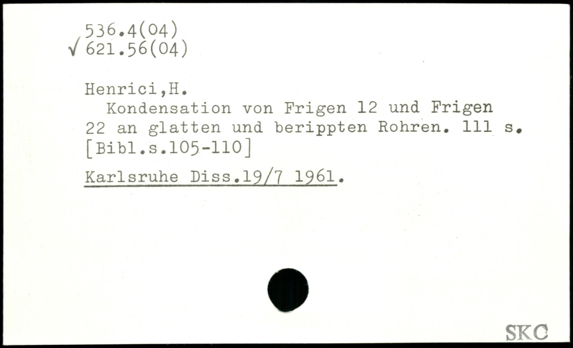 Kondensation von Frigen 12 und Frigen 22 an glatten und berippten Rohren.