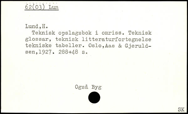 Teknisk opslagsbok i omriss. Teknisk glossar, teknisk litteraturfortegnelse tekniske tabeller.