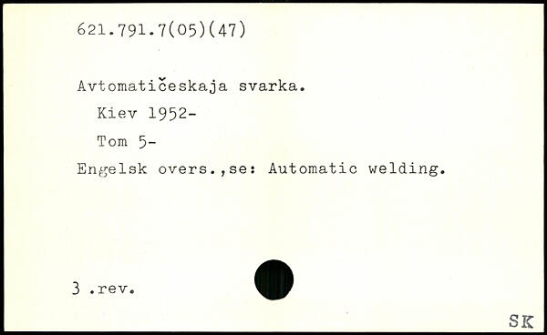Avtomaticeskaja svarka. Kiev 1952-Tom 5- I Engelsk overs.,se: Automatic welding.