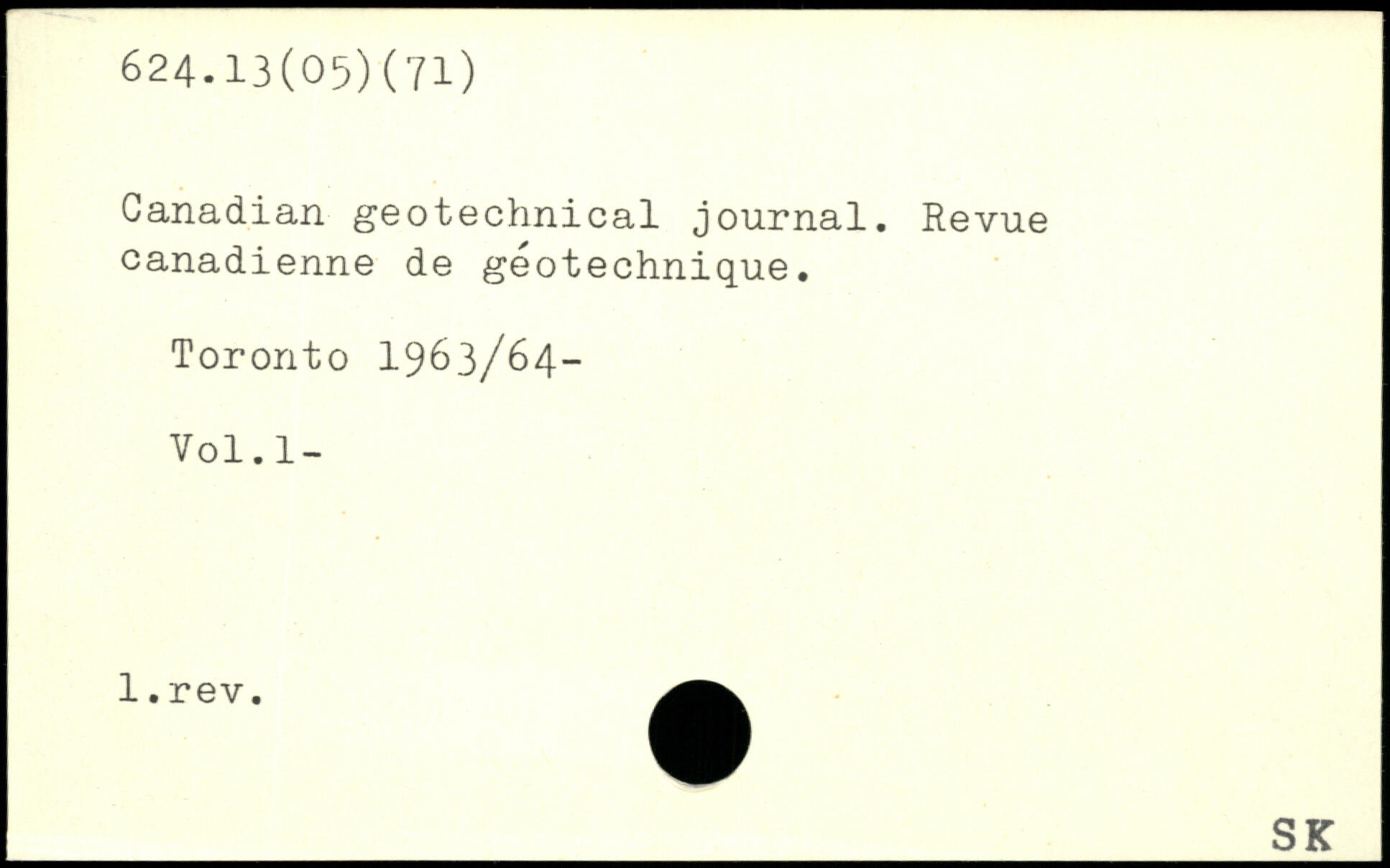 Canadian geotechnical journal. Revue canadienne de géotechnique. Toronto 1963/64- Vol.l-