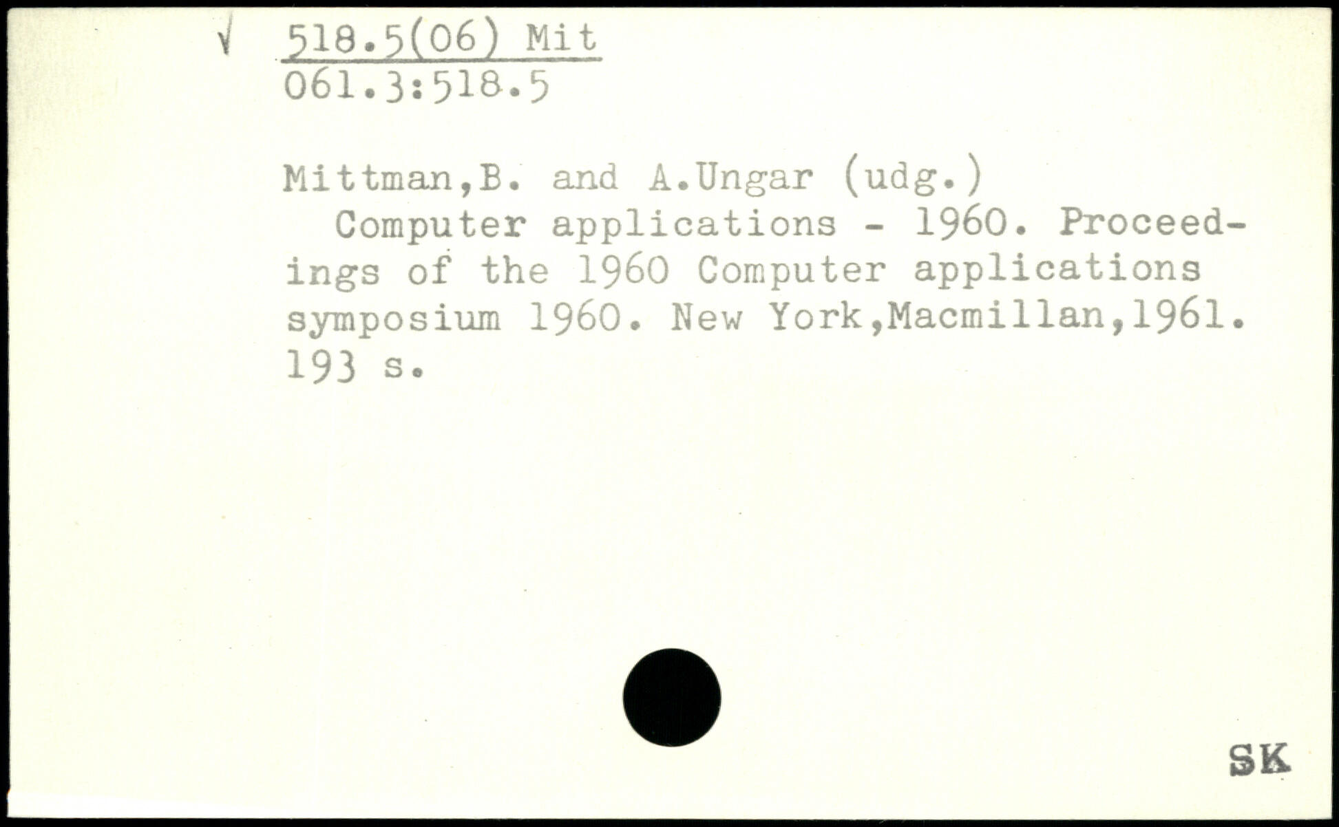 Computer applications - 1960. Proceedings of the 1960 Computer applications symposium 1960.
