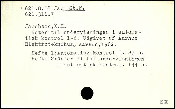 Noter til undervisningen i automatisk kontrol 1-2. Udgivet af
