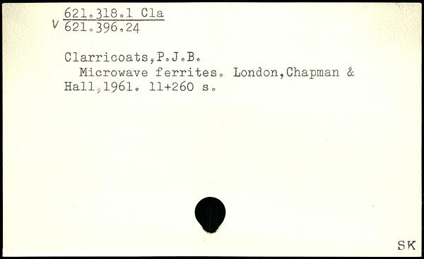 Clarricoats,P, JoB0 Microwave ferrites, London,Chapman & Ha115196.I