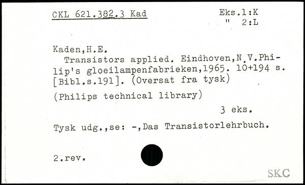 Transistors applied. Eindhoven,N#V.Philip's gloeilampenfahrieken,1965.